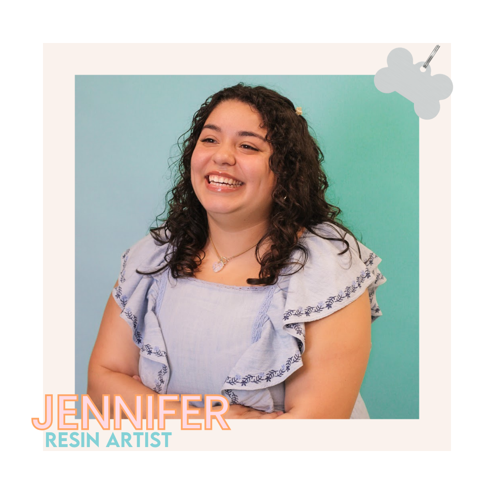 Jennifer is our in-house resin artist and handmakes unique and eye-catching dog tags that are both functional and stylish!