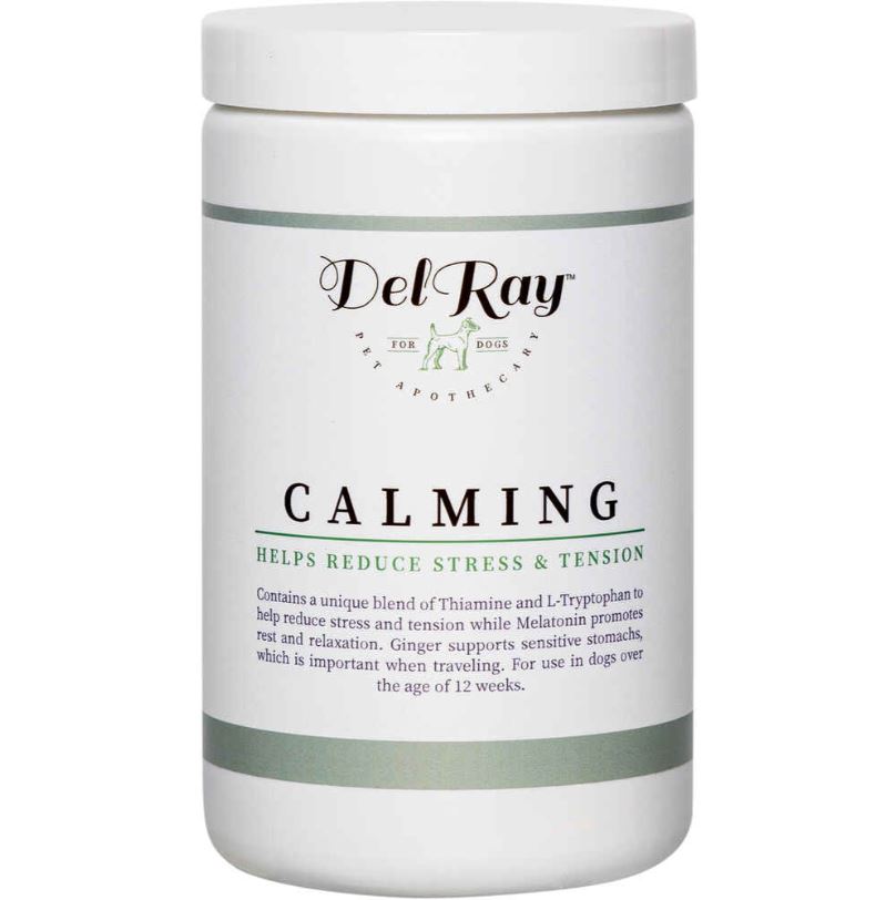 Stressors are all over, from a thunderstorm rolling in, to a car backfiring outside, and even to a groomer visit. For times of stress or chronic anxiety, DelRay Calming Plus Melatonin Soft Chews for Dogs can help. Made with a comprehensive blend of an essential amino acid, a balancing B vitamin, and several wholesome herbs, this dog calming aid encourages rest and relaxation. In anticipation of a stressful event, give dose 30 minutes prior. This formulation is quickly absorbed for enhanced bioavailability. Common auditory triggers include thunder, wind, fireworks, vacuums, and construction. Common stressful events for pets include veterinarian or groomer visits, travel, motion sickness, and new adoptions or additions to the household.