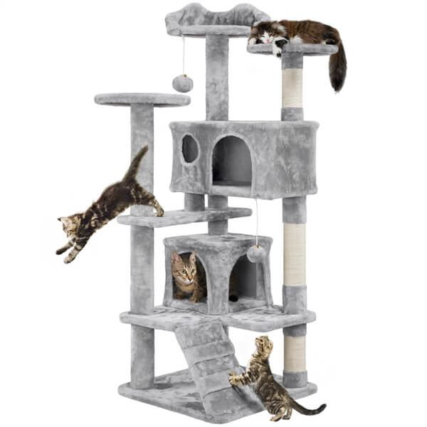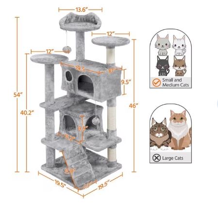 - Includes a safety strap to help secure the cat tree to a wall, which helps prevent your cat from getting hurt when leaping off the tree.
