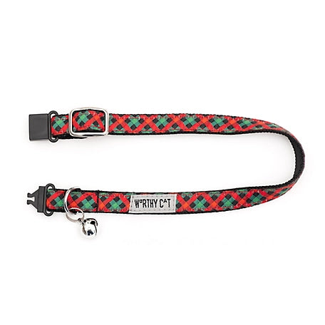- Stylish green and red checkered design wraps around the adjustable cat collar for a unique looking finish