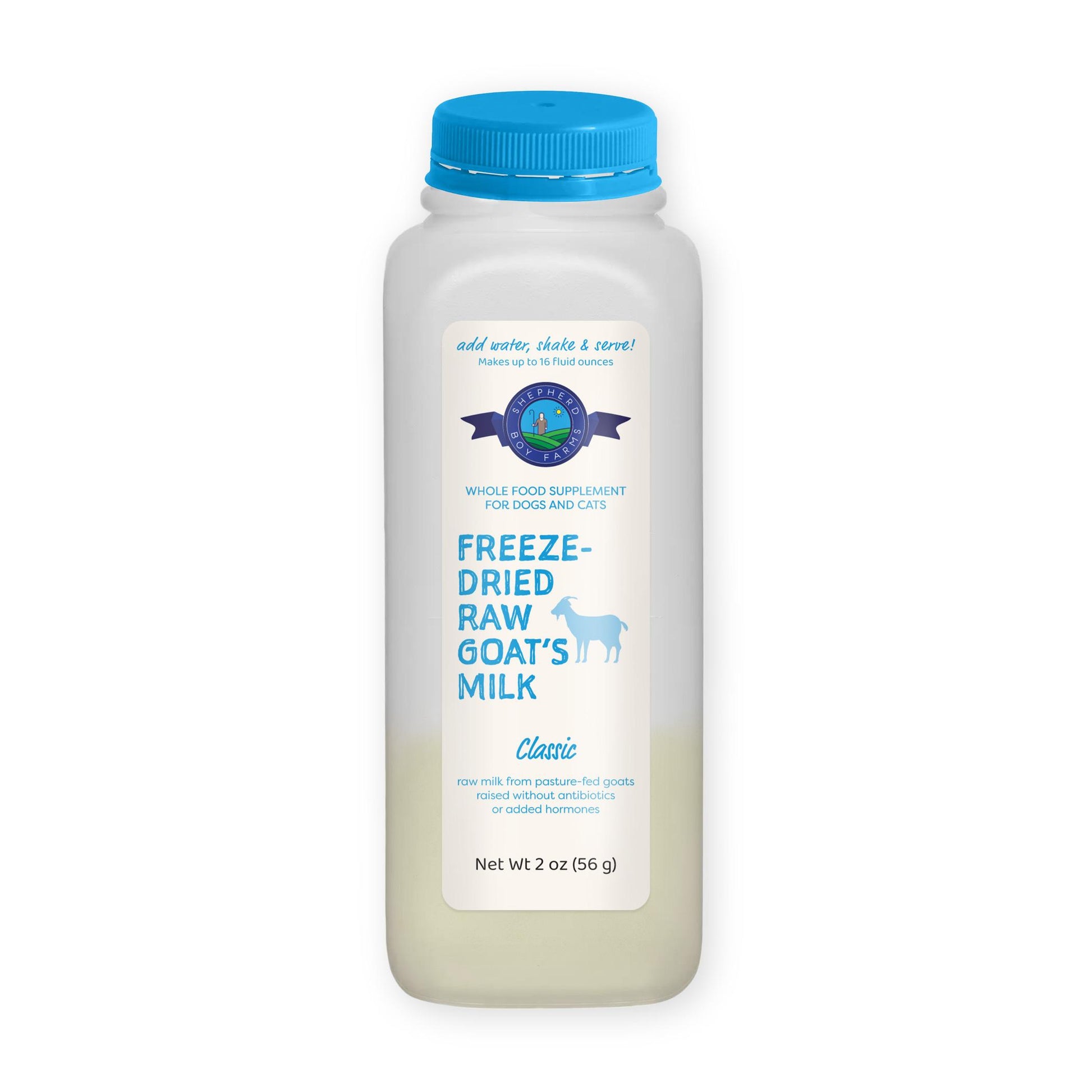 We source pure milk from pasture-fed goats raised without antibiotics or added hormones to make this super-healthy topper/treat. You can take this tasty supplement wherever you go – no freezer required. Just add water, shake and serve!