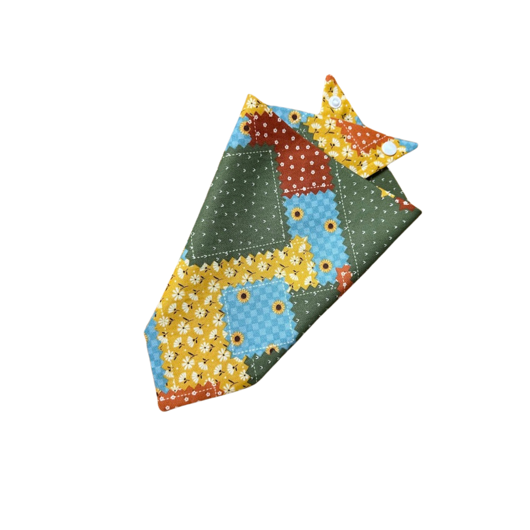 Our bandanas are made with 100% cotton fabric and fused for durability. All our bandanas are cut, sewn, and hand crafted specially for your furbaby! Due to the handcrafted nature of this item sizing and pattern placement may slightly vary.
