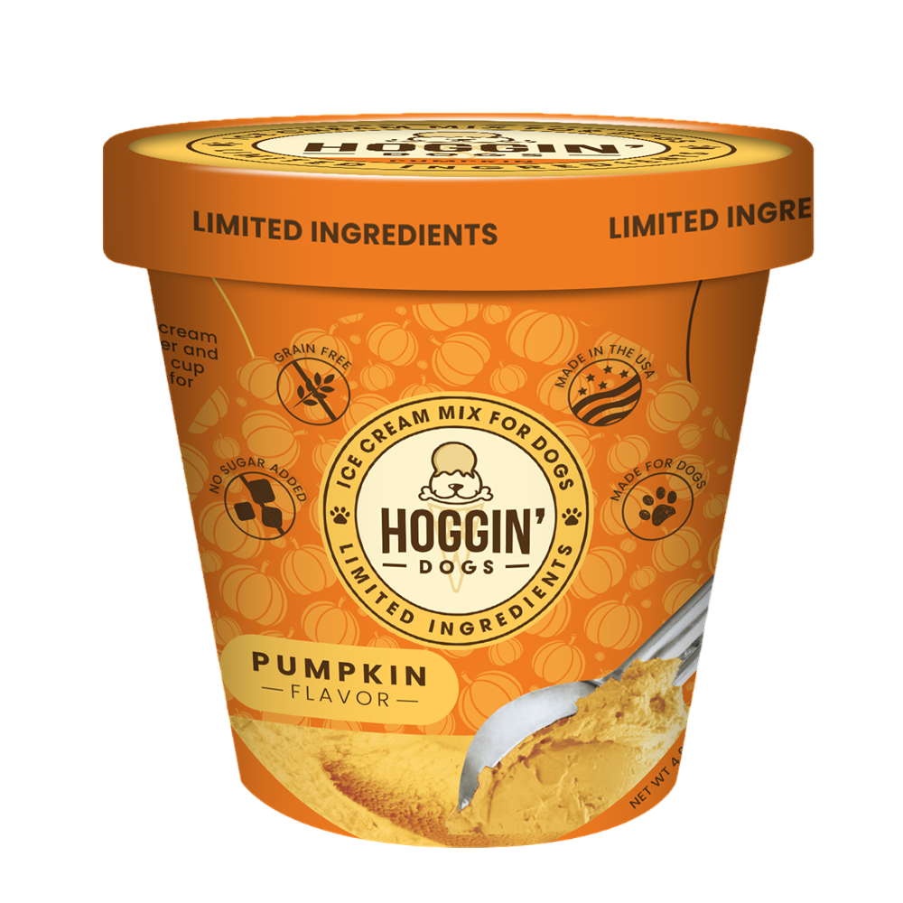 Our brand-new Pumpkin-flavored Hoggin' Dog Ice Cream doesn't just tantalize the taste buds; it's also wholesome treat option! Every flavor is lactose-free and free from added sugars, allowing you to serve your dog with confidence. Simply mix with water, freeze, and let your pup indulge in the deliciousness!