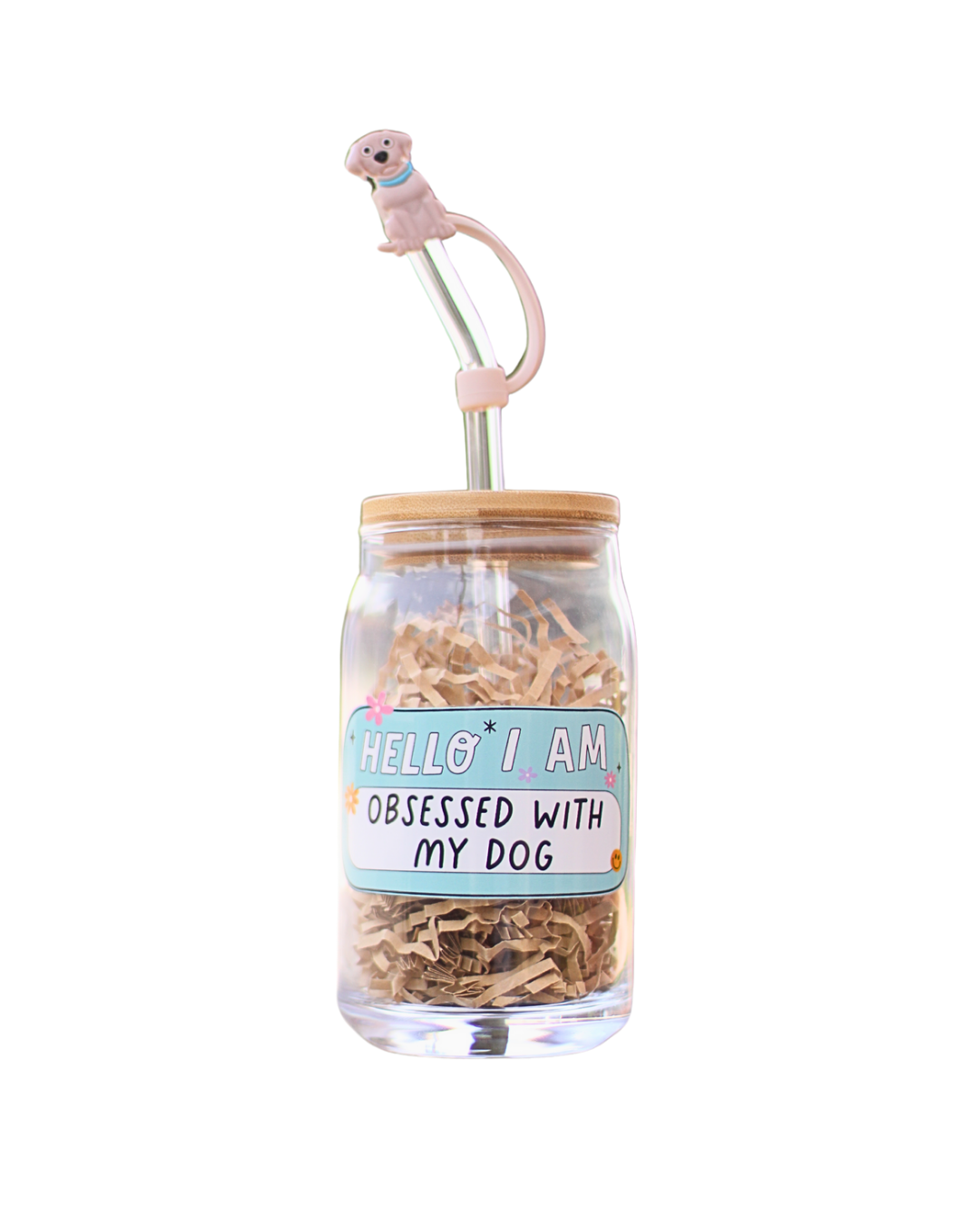 🐾 Only Dog Vibes Glass Can Cup – With Lid, Straw & Topper | 16 oz