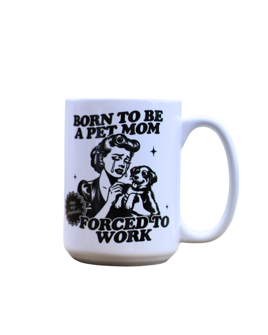 Express your pet parent pride with this playful ceramic mug featuring the hilarious truth: "Born To Be A Pet Mom, Forced To Work." Perfect for coffee breaks between feeding, walking, and spoiling your fur babies. A must-have for anyone whose true calling is pet parenthood but has bills to pay!