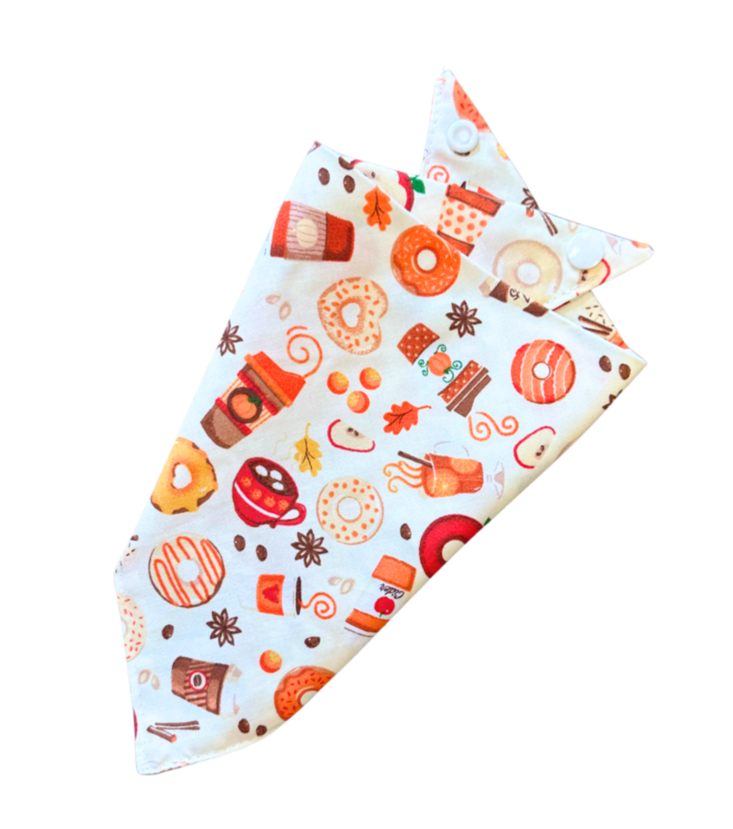 Our bandanas are made with 100% cotton fabric and fused for durability. All our bandanas are cut, sewn, and hand crafted specially for your furbaby! Due to the handcrafted nature of this item sizing and pattern placement may slightly vary.