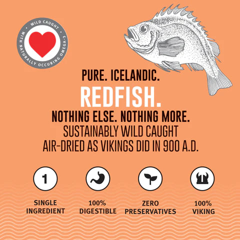 Delicious meets nutritious with our crunchy Redfish Skin Rolls, a natural source of Omega-3 fatty acids for healthy skin and coat. These premium dog treats feature just one ingredient—Icelandic golden redfish—and contain no additives, preservatives or supplements. After being line-caught daily in the icy pure waters of Iceland, our redfish are cleaned and air-dried within FDA, USDA, EU, and MAST standards and regulations. Since these treats feature only one protein source, they are a great choice for dogs with food sensitivities. Plus, they reduce tartar and plaque build-up for healthier teeth and gums.