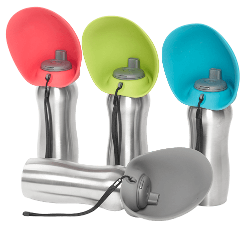 This award winning dog travel water bottle and bowl is easy to use and ideal for walks, hikes and road trips. Just fold up the silicone bowl and press the quick release button to quench your messy mutt’s thirst! Unused water drains back into the stainless steel bottle after use and the bowl folds back over the bottle for easy portability.