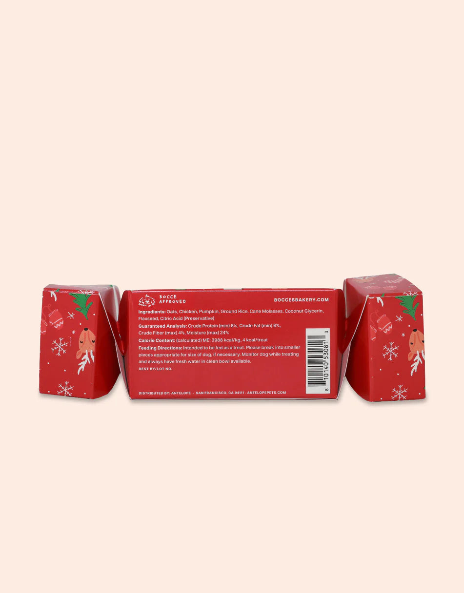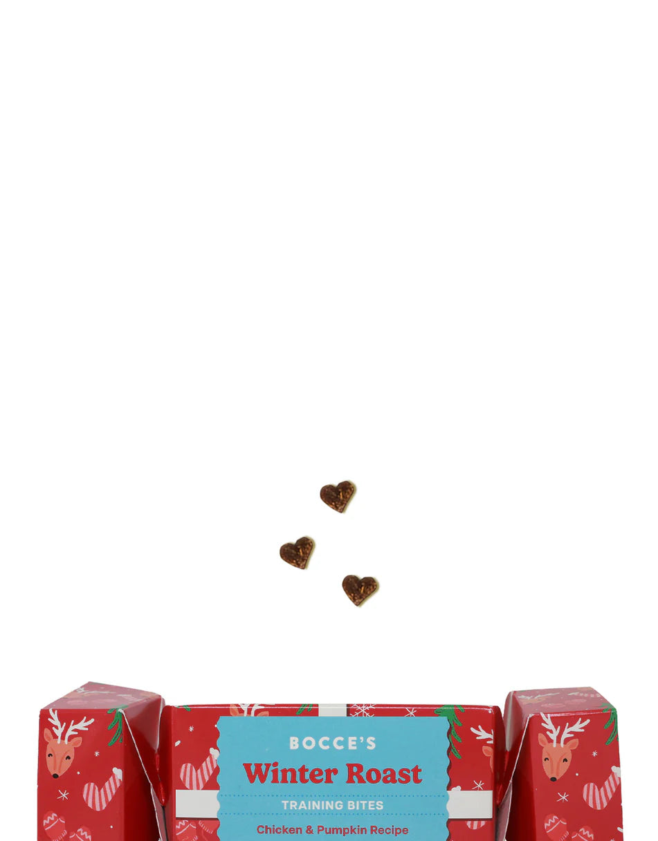 Your pup can now join you during the holidays for a Winter Roast! Our training bites are wrapped in a festive cracker and made with chicken and pumpkin to keep those bellies full and happy during the joyful season.